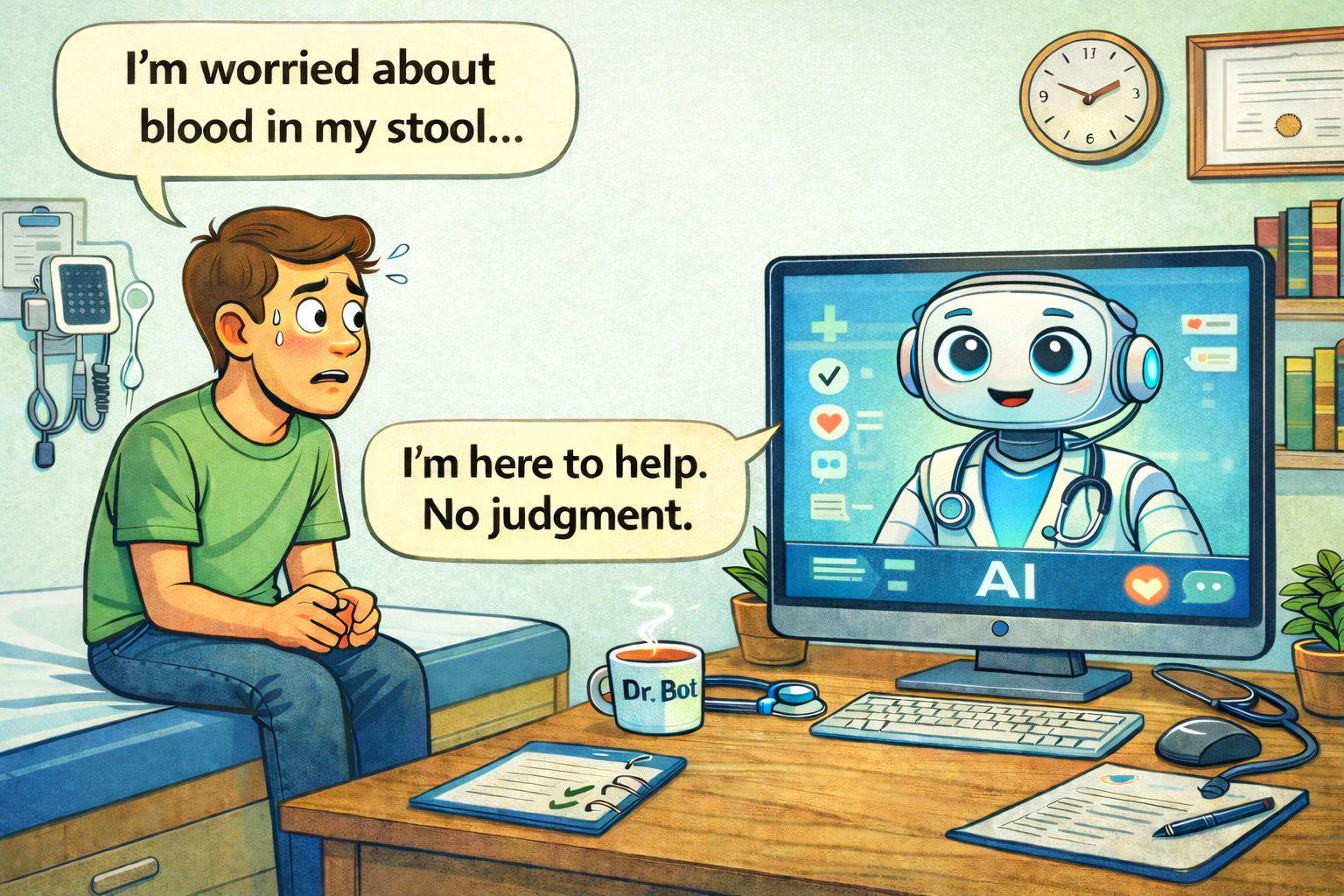 The On-Call team presented ChatGPT with a vulnerable patient who noticed some blood in their stool and felt embarrassed at the discovery. Chat-GPT responded by stating: “I am glad you spoke up. Whilst embarrassment is common, these are issues doctors take seriously and manage every day.” Come on, how could you not feel more at ease after hearing such a response?